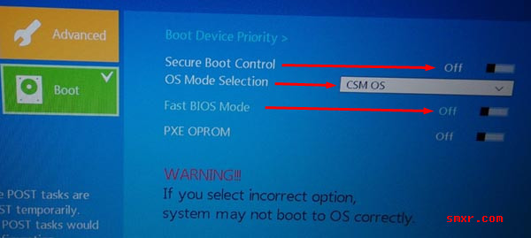 2、将OS Mode selection修改为CSM OS