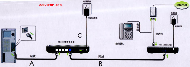 1、长城宽带用户或者其它没有使用猫的用户请直接将进线连接路由器的WAN口